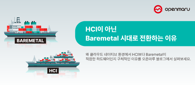 이러한 불편함으로 인해 클라우드 네이티브 환경이 대두되면서 HCI가 아닌 다시 Baremetal 장비가 대세인 시대로 변화하였습니다.