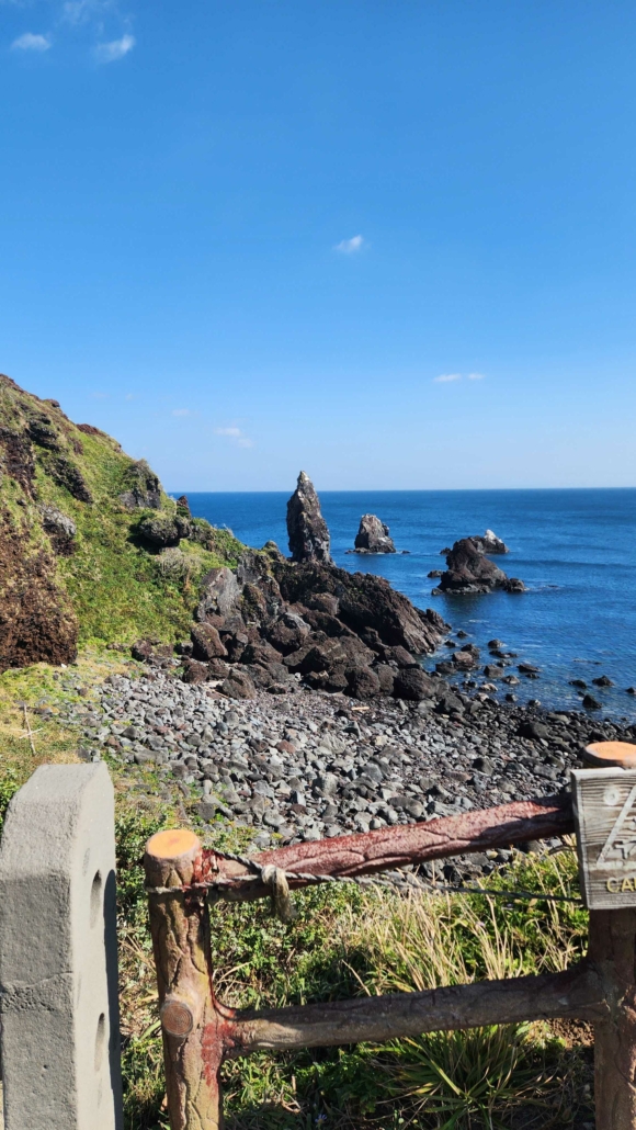 바위로 둘러친 해안절벽과 우뚝 치솟은 전설 어린 선바위 등은 전형적인 제주의 아름다움을 만날 수 있었습니다.