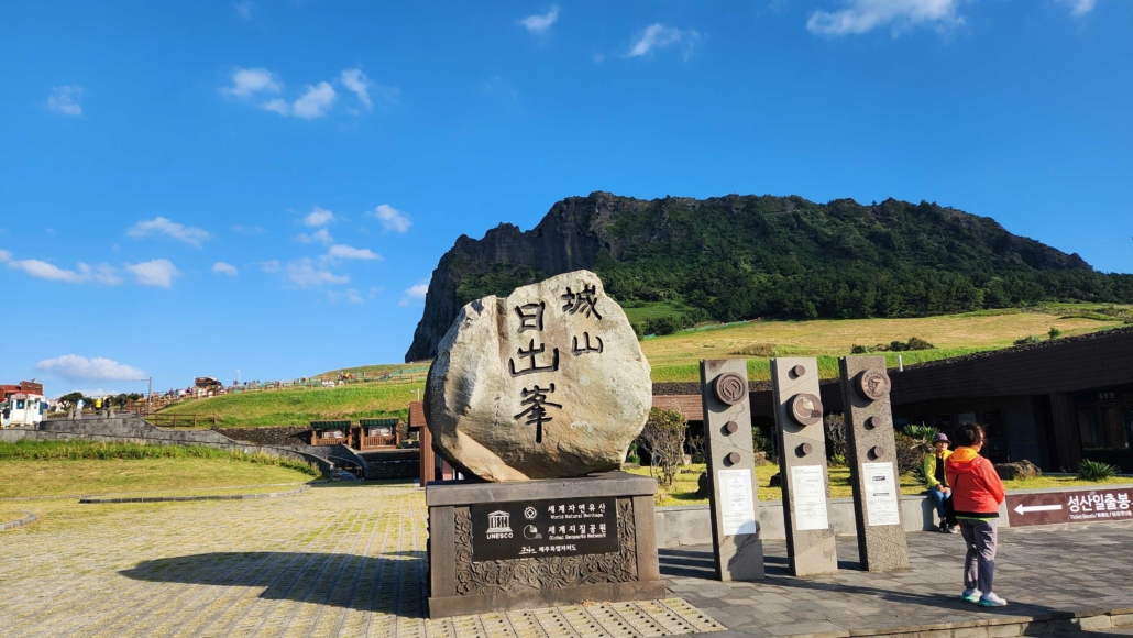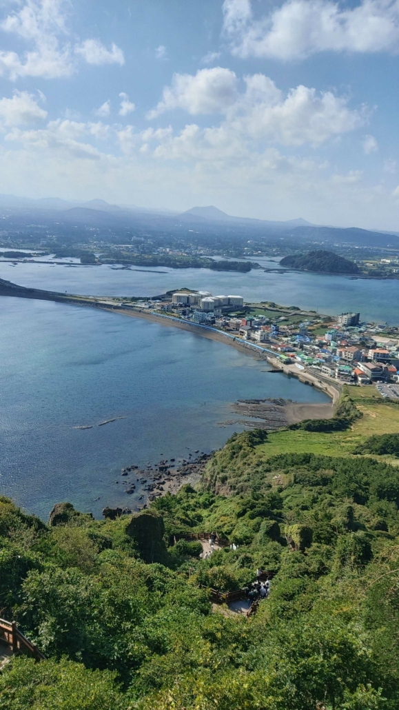 성산일출봉 입구에서 전망대까지 걸어서 30분 정도 소요가 되며, 한개 팀이 전망대까지 올라서 ‘성산일출봉’에서 바라보는 멋진 풍경 사진을 남겨주셨습니다.