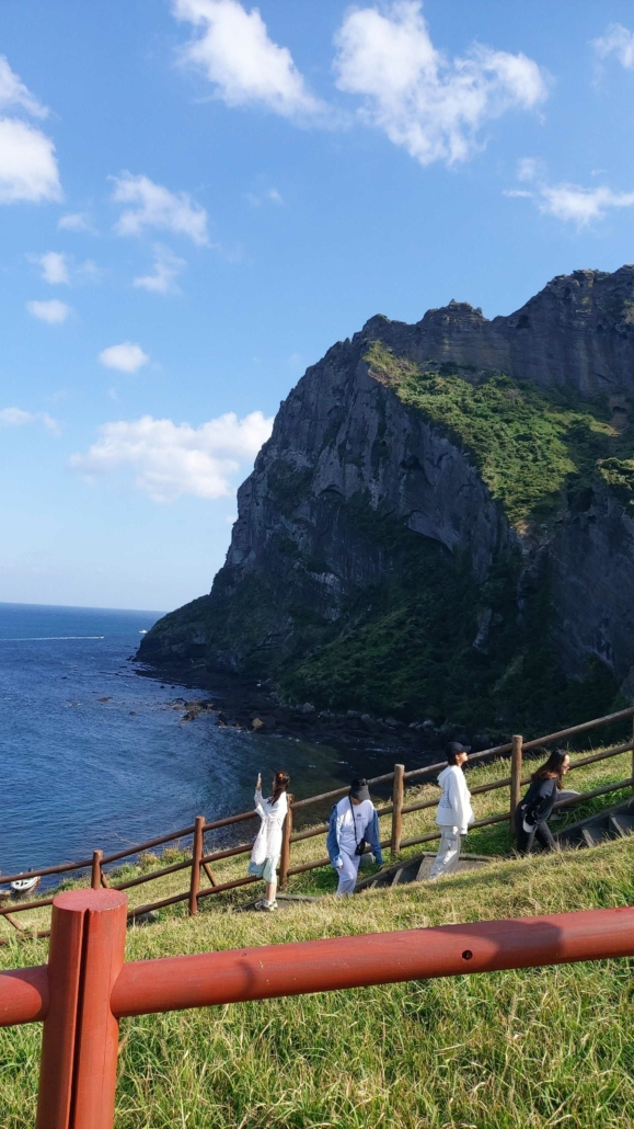 Playshop 첫째날 두개의 팀이 제주 동쪽에 위치한 ‘성산일출봉’에 다녀왔습니다. ‘성산일출봉’은 제주도의 다른 오름들과는 달리 마그마가 물속에서 분출하면서 만들어진 수성화산체입니다.