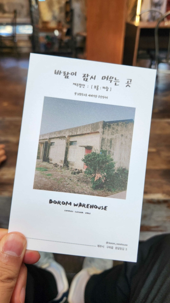 카페 보롬창고의 이름의 보롬은 제주 방언으로 ‘바람’이라는 뜻을 갖고 있습니다. 아이스 아메리카노 한잔씩 하며 카페 보롬창고의 이쁜 실내와, 주변의 풍경을 마음껏 즐기는 시간이었습니다.