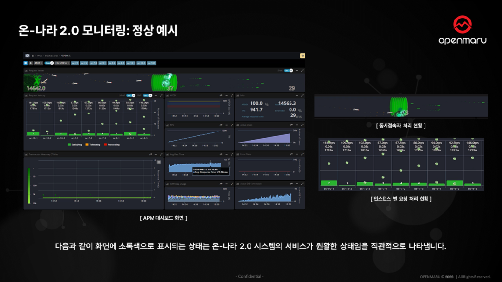 OPENMARU APM은 온나라 2.0을 운영하시면서 발생할 수 있는 장애나 오류를 간편하게 모니터링하고, 빠르고 정확한 기술지원을 받을 수 있는 시스템입니다.
