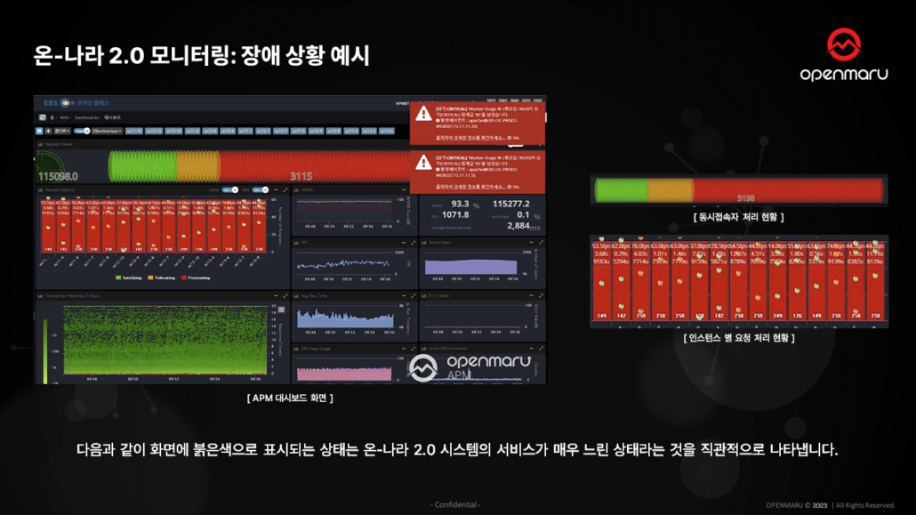 OPENMARU APM은 온나라 2.0을 운영하시면서 발생할 수 있는 장애나 오류를 간편하게 모니터링하고,