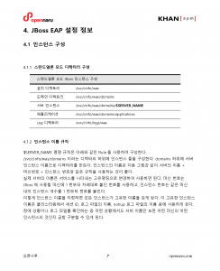 설치보고서에서 다루는 내용은 JBoss EAP6(AS7) 에 필요한 각종 구성 정보들을 일목요연하게 제공하며 운영에 필수적인 주요 Apache , Tomcat 에 대한 구성 방법을 제공합니다.
