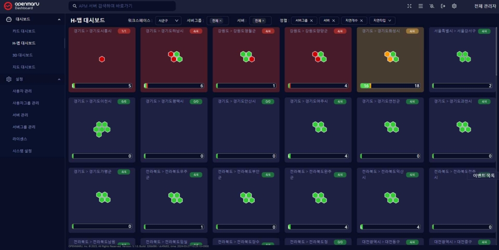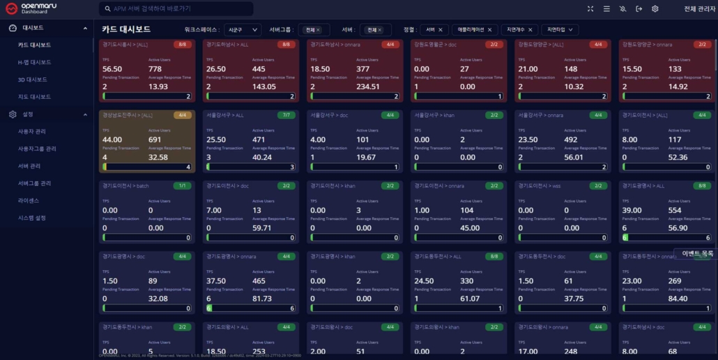 OPENMARU Dashboard는 다수의 OPENMARU APM을 하나로 통합하여 유지보수 및 모니터링 프로세스를 단순화하고, IT 운영팀이 시스템 성능을 효과적으로 관리 할 수 있도록 지원합니다.