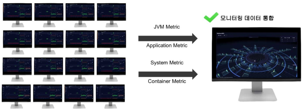 OPENMARU APM을 통합하여 모니터링 함으로써, 운영 효율성과 가시성을 높인 모니터링을 지원합니다.